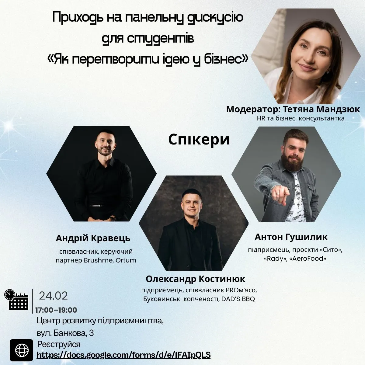 Модератор: Тетяна Мандзюк - HR та бізнес-консультантка
